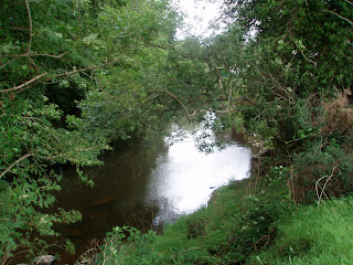 Dunadry is a village situated just outside of Antrim, along a long country road known as the Seven Mile Straight. My brother told me of this lovely river walk and it really is unspoiled by man. First of all we had to park in the grounds of a church and climb over a sty to get into a large field. It all seemed plain sailing until Mark informed me that we would have to climb over another sty and pass through a field of dairy cows to access the river walk. I am afraid of cows, their sheer bulk frightens me, okay, their eyes are pretty scary too. Anyhow, we covered Lola's eyes (our dog) and quietly crept across their field to another sty, which lead us to the river. The river was more of a shallow stream, which was very clear with pebbles on its bed, we noticed a few fishermen clearing the river of nets etc. We walked through the fields which lead to the old tannery, a building where the animal skins were dyed, I am not sure of the reason but the building is now in ruins but is slowly being restored. There is also a large country house being built out of the industrial ruins. This walk wasn't as exciting as our Six Mile River walks, or indeed our rambles through the woods but it was still pretty nonetheless. As you can see from the photos, there was nothing but green fields and plenty of fresh air!